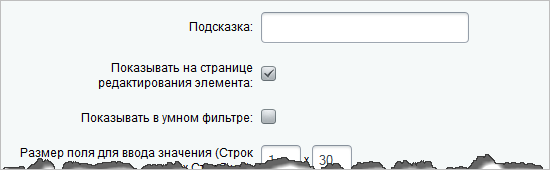- При необходимости задайте параметры отображения: тип в фильтре, подсказку, развёрнутый вид.
